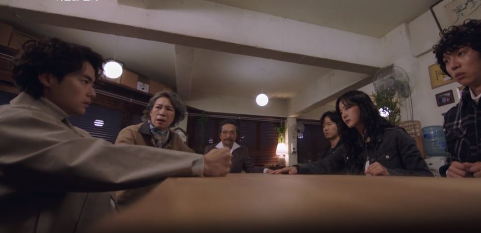 악귀 일행은 백두건설의 박프로를 만나서 사라진 돈의 행방을 물어봅니다. 박프로가 모른다고 하자 필광은 염력으로 박프로 혼자 자기 목을 스스로 조르게 합니다. 그런데 하필 그 순간 마주석(진선규)의 아내 민지가 그 엘리베이터 앞에서 그 모습을 보게 됩니다.