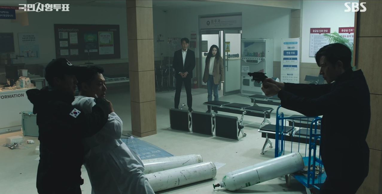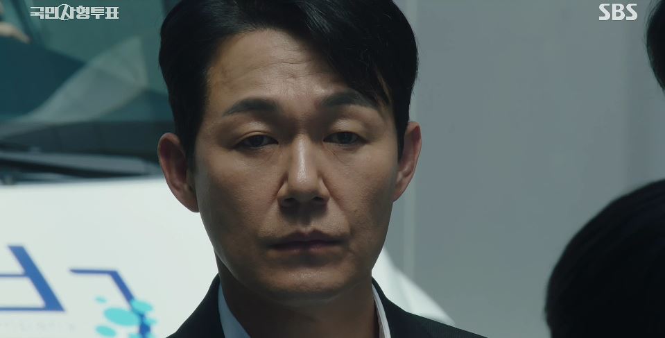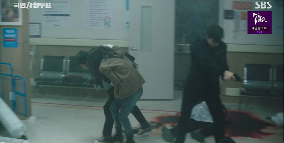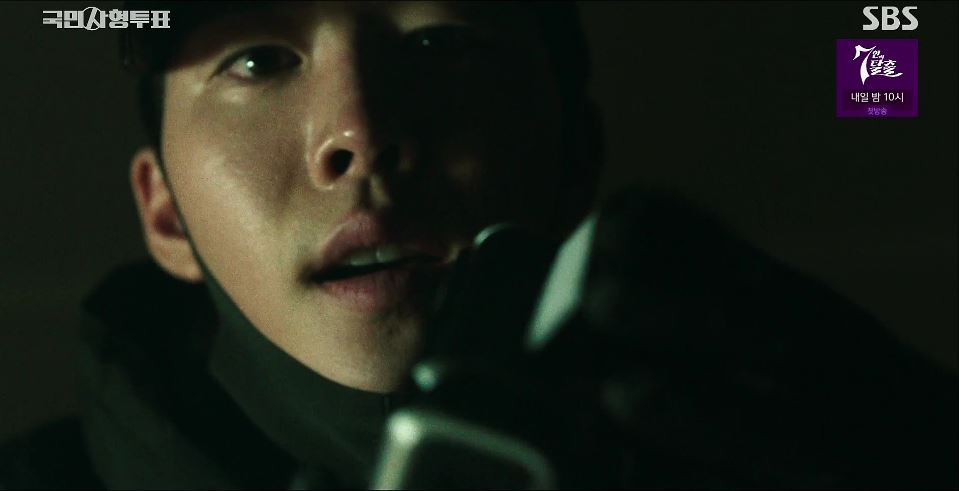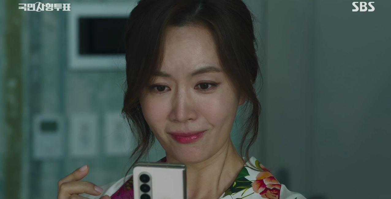 민수는 "들켰네"라고 합니다. 사실 첫 번째 국민사형투표의 대상자였던 배기철의 아내를 죽인 것도 민수의 짓이었습니다. 그러면서 민수는 역시 엄마는 못 속인다며 웃으며 자기가 선물하나 준비했다고 하며 엄마가 정말 좋아할 거라고 합니다.