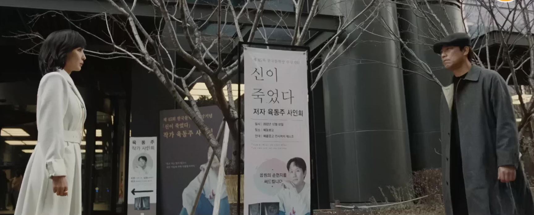 육동주는 신이 죽었다 저자 사인회를 하고 있습니다. 그러던 중 한 학생이 누군가 주었다는 쪽지를 전달해 줍니다. 동주가 누가 쪽지를 주었는지 물으니, 학생은 그 사람을 가르칩니다.