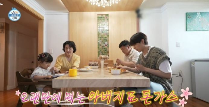 이유진은 아버지가 가족들이 모이는 날에는 아버지가 요리를 해주신다고 합니다. 이효정 씨의 별명이 '일산 이연복'이라고 합니다. 아버지가 준비한 수제 돈가스입니다. 고기도 직접 두드리고, 빵가루도 직접 만든다고 합니다.
