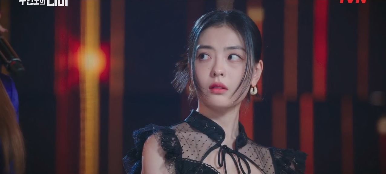 우학은 무대의상을 입고 메이크업을 해서 너무나 아름답게 변한 목하를 알아보지 못합니다.