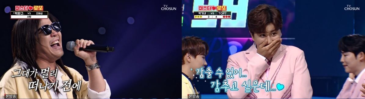 박완규와 진해성은 '사랑'이라는 제목의 노래를 부르며 대결을 펼쳤는데, 박완규는 임재범의 '사랑'을 열창하며 레전드 무대를 선보였고 98점을 받았습니다. 하지만 진해성은 나훈아의 '사랑'을 안정적인 고음으로 소화하며 99점을 받고 박완규를 꺾고 승리했습니다. 이는 단 1점 차이로 승부를 가른 명승부였으며, 진해성은 이로써 자신의 자존심을 회복한 대결을 펼치게 되었습니다.