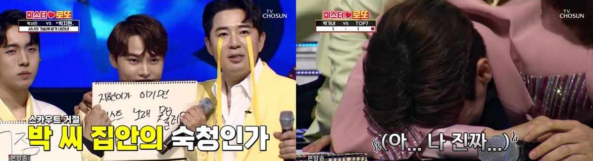 무대에 오른 박서진은 '정말 좋았네'를 열창하며 98점이라는 높은 점수를 받아 박지현을 긴장하게 만들었습니다. 이에 이어 떨리는 마음으로 무대에 오른 박지현은 '사나이 가슴에 비만 내리네'를 불렀고, 96점을 받으며 다시 한번 패배하게 되었습니다. 이로써 박지현은 6 연속의 무승을 기록하며 첫 승을 차츰 히 거둘 수 있는 기회를 놓치게 되었습니다.