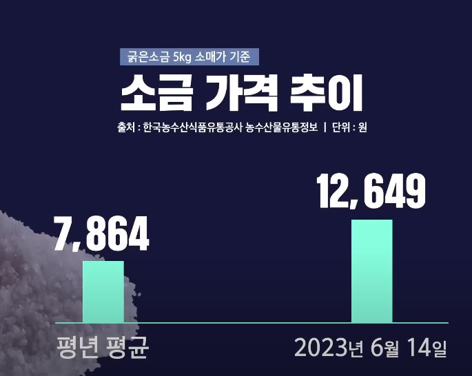 아직 일본 후쿠시마 원전 오염수가 방류되지 않았기 때문에 이로 인해서 소금 사재기가 생겼다고는 볼 수 없습니다. 여러 가지 가격상승요인과 맞물리고, 거기에 원전 오염수에 대한 소비자의 불안심리가 합쳐져서 천일염 사재기가 발생되었다고 보입니다.