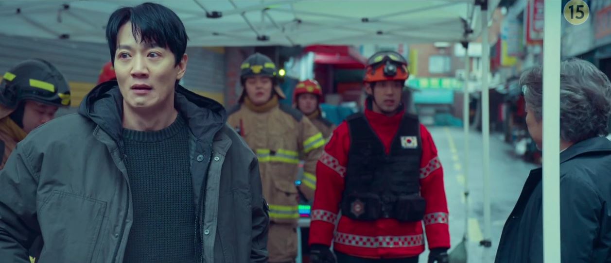 무영지하상가에서 화재가 발생해서 소방관들이 투입되어 화재는 어느 정도 진압이 되어 송설(공승연)이 인명구조를 위해서 현장으로 투입되었는데, 갑자기 건물이 붕괴되며 건물 속에 매몰되어 버립니다. 그 와중에도 송설은 다리부상을 입은 두준을 살피며, 지혈을 하려 합니다.