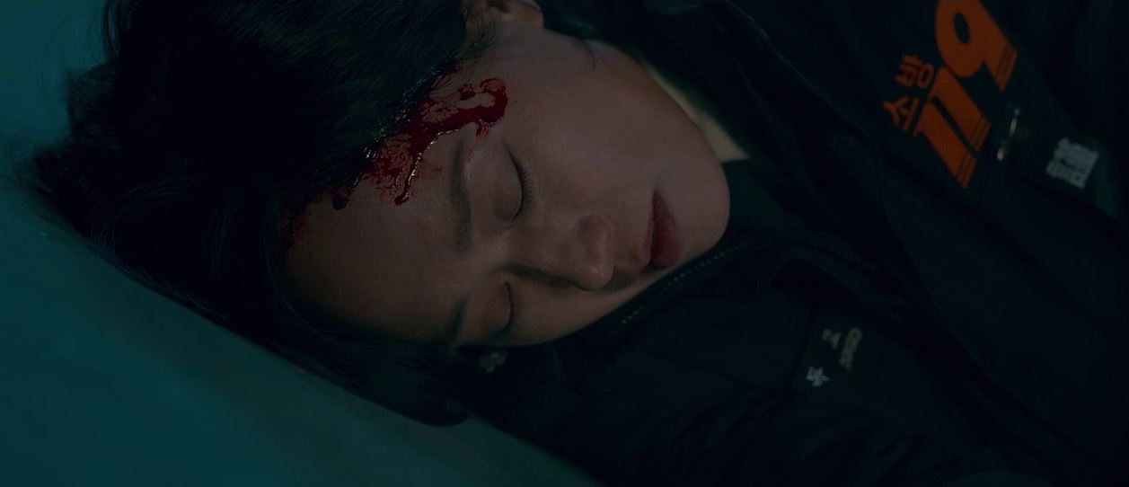 도진의 집 엘리베이터에서 연쇄방화범과 설이 만나게 됩니다. 범인은 송설을 망치로 머리를 내리치고, 송설은 쓰러집니다.