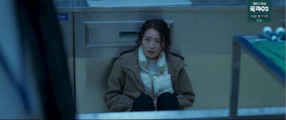 다행히 루핑 된 영상으로 CCTV를 확인하고 있는 범인을 속이고 있는 중에 윤홍은 법원에 도착하였고, 소방대원들은 주변 CCTV가 없는 곳을 통해서 부검실에 갇혀있는 사람들을 구하러 갑니다.