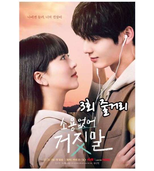 소용없어 거짓말 3회에서는 도하의 얼굴을 솔희가 보게 됩니다. 이에 놀란 도하는 빌라로 가지 않게 되자 솔희는 도하에게 사과를 하게 됩니다. 솔희가 지난 의뢰인을 사기 치려던 사기꾼을 만나게 되어 곤욕을 치르게 되자 이를 도하가 구해줍니다. 그리고, 둘은 좀 더 친해지게 되는데, 도하를 찾으러 다니던 기자를 집 앞에서 만나게 됩니다.