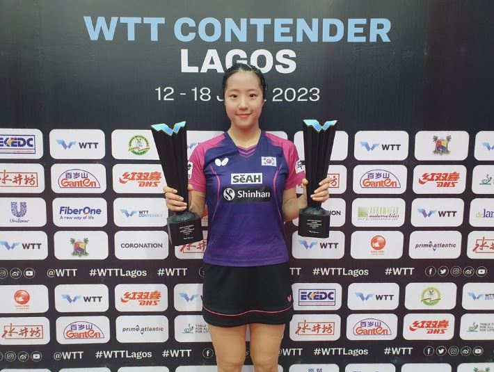 한국 여자탁구의 신유빈 선수가 나이지리아에서 개최된 'WTT 컨텐더 라고스 2023'에서 훌륭한 결과를 거두었습니다. 개인단식과 개인복식에서 모두 우승하여 2관왕의 영예를 안았습니다. 특히 여자복식에서는 전지희 선수와 함께 중국 대표팀을 꺾고 우승을 차지했습니다.