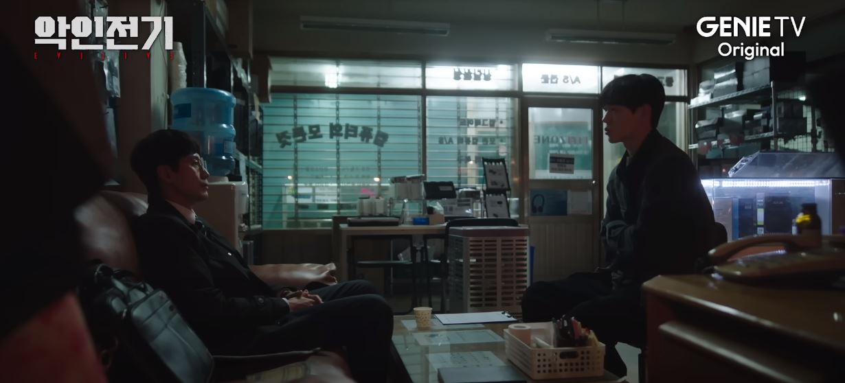 악인전기 2회에서는 도영의 협박에 도영이 감시하라고 시킨 박제이의 집에 몰카를 설치하는데, 그곳에서 도영을 죽이려 일을 꾸몄던 조직 내 넘버쓰리와 박제이가 내통하는 것을 확인하게 됩니다. 넘버쓰리는 출소 전 도영을 처리하려 했으나 실패하고 도영은 무사히 출소합니다.