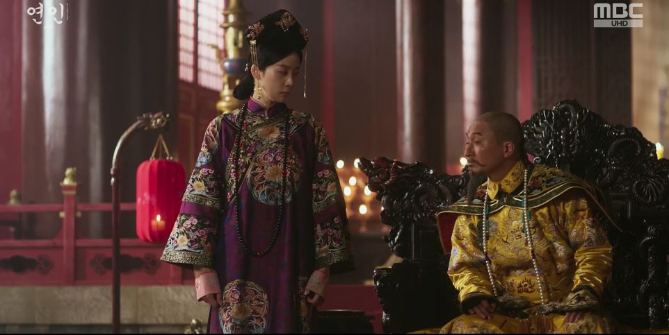 각화는 길채를 청황제에게 진상할 생각이라며, 그게 싫으면 평생 자신의 종으로 살게 될 거라고 이야기합니다. 그러자 길채는 고민을 하다 자신이 장현에게 폐가 될까 봐 청황제를 모시겠다고 답을 하게 됩니다. 이에 각화는 이장현도 불쌍하네 이런 여자를 속환시키려 그 애를 쓰다니라고 하며 너 같은 계집은 폐하가 한두 번 즐기다가 말겠지만 장현을 단념시키기에는 충분하지라고 자신의 속내를 드러냅니다.