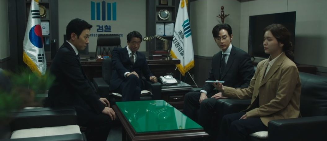 영운과 영주는 검사장을 찾아가서 1년 전 그 사건을 재수사하겠다고 하지만, 검사장과 부장검사는 절대 안 된다고 이야기합니다. 이미 다 끝난 사건인데 왜 들쑤시냐며 조용히 사건을 덮자고 합니다만 영주가 이 말들을 다 녹음을 했고, 재수사 안 하면 이 녹취록 까고 내부고발하겠다며 검사장을 압박합니다. 그래서 일단 보안을 철저히 하는 조건으로 재수사를 허락받습니다.