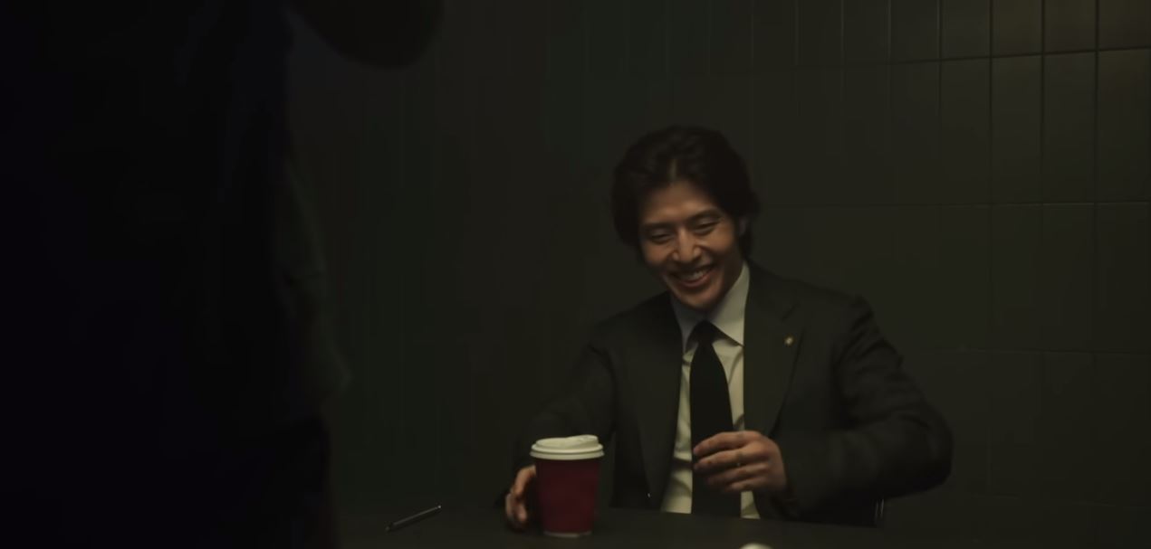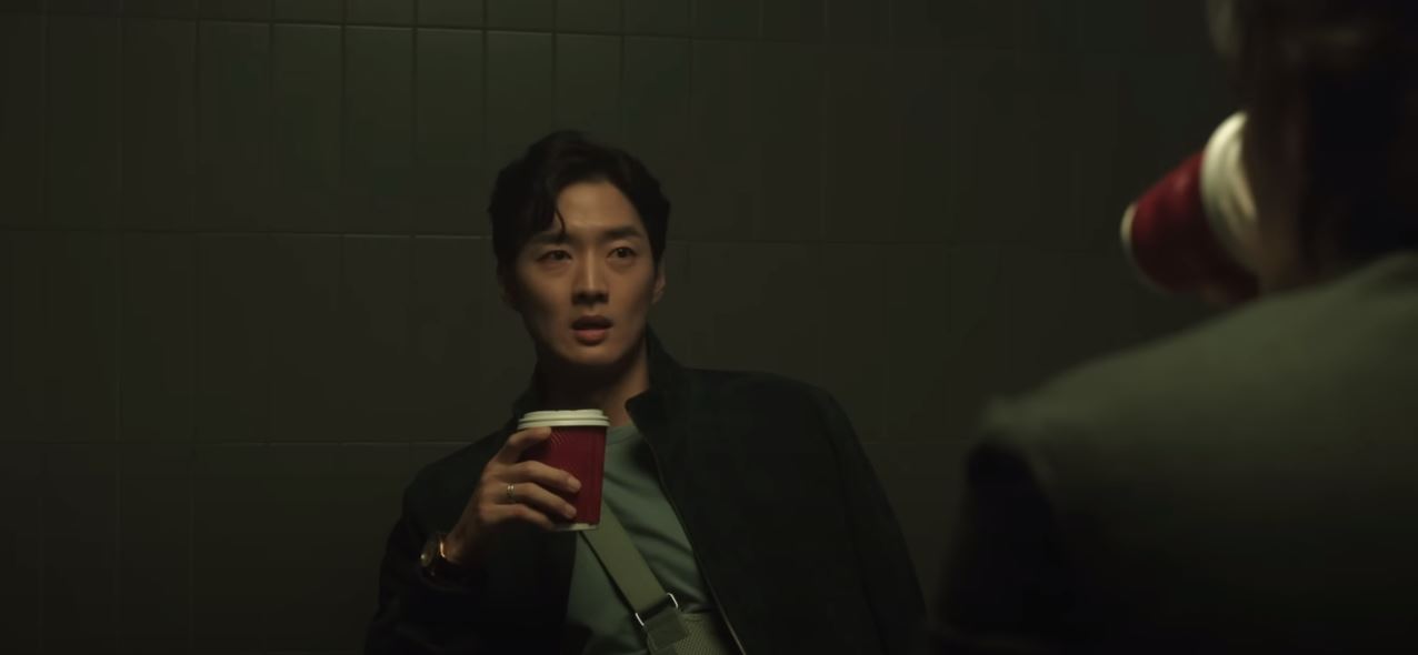 제이든이 있는 경찰 취조실에 X캐피털 본사에서 왔다는 리처드 최(강하늘배우 특별출현)가 찾아와 커피를 권해서 커피를 마십니다.