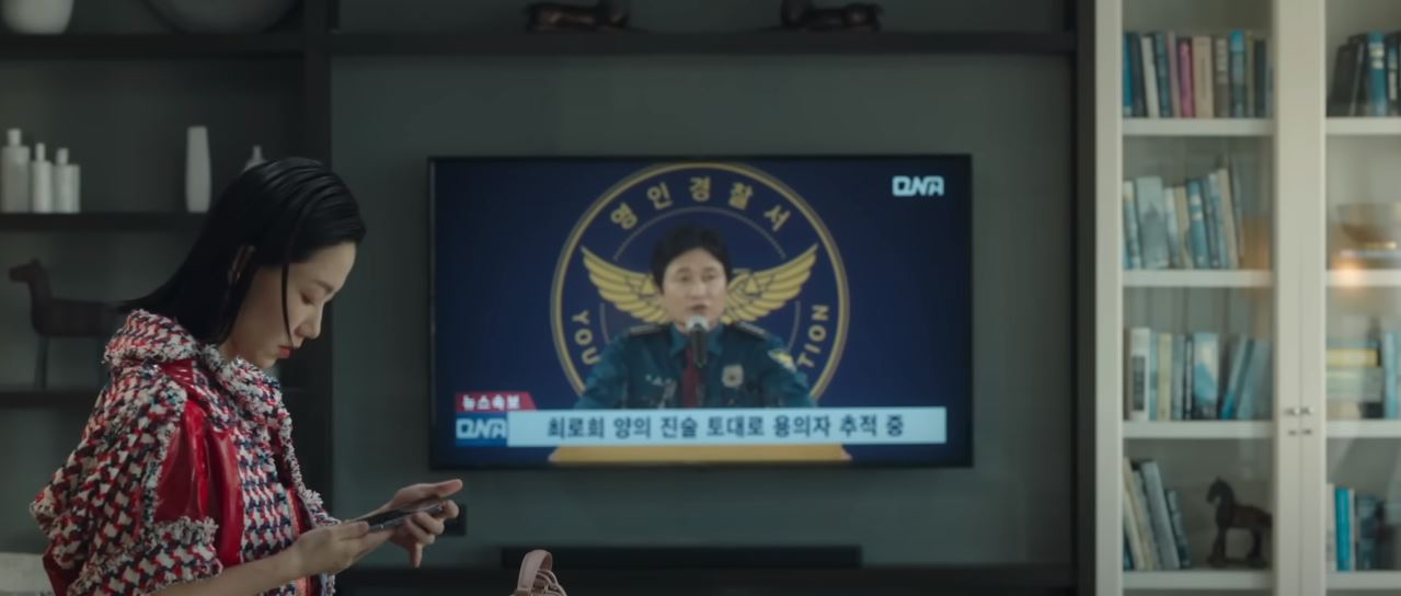 결국 서장이 언론에 나와 최진태 살인 사건 현장에서 박철원 이외에 한 명의 용의자가 더 있었고, 추적 중이라는 브리핑을 합니다. 이 뉴스를 본 혜은은 몹시 당황해하며 제이든에게 전화를 걸어 보는데, 제이든은 전화를 받지 않습니다.