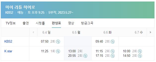 마이 리틀 히어로 재방송 일정표