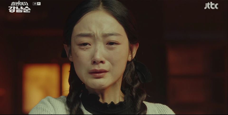 힘센 여자 강남순 3회에서는 화자는 진짜 금순의 딸 남순을 없애고 자신이 금주의 딸이 될 욕망에 남순을 공격하러 가서 게르를 부수는데, 남순이 나타나 그 무리들을 다 날려버립니다. 이에 희순은 남순이 진짜 금주의 딸임을 직감하고 금주에게 연락을 해서 진짜 딸을 찾았다며 둘을 만나게 해 줍니다.