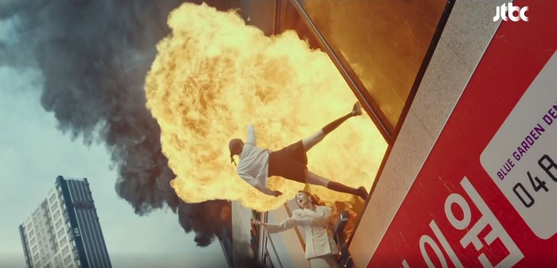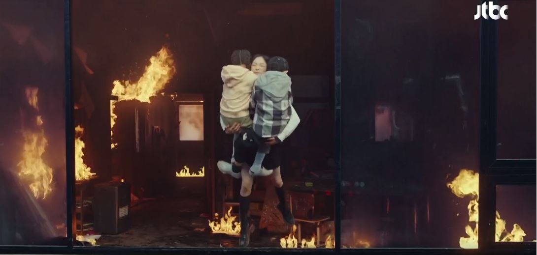 몇 번을 빌딩을 오르락내리락하면서 남순은 화염 속에서 아이들을 구해 냅니다. 그러나 너무 체력을 소모했나 나중에는 빌딩위를 뛰어올라가다 떨어질뻔합니다.
