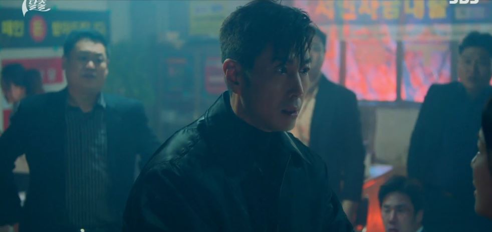 그러다 진모가 나서서 강기탁에 칼을 겨누며 니가 네 사업을 뺏아라고 달려들자 민도혁이 나서서 진모를 폭행합니다. 도혁은 자신이 이휘소의 사람이라고 밝히며, 도혁은 진모에게 자신의 엄마와 동생을 왜 불태워 죽였는지 분노하면서 사정없이 폭행해 버립니다.